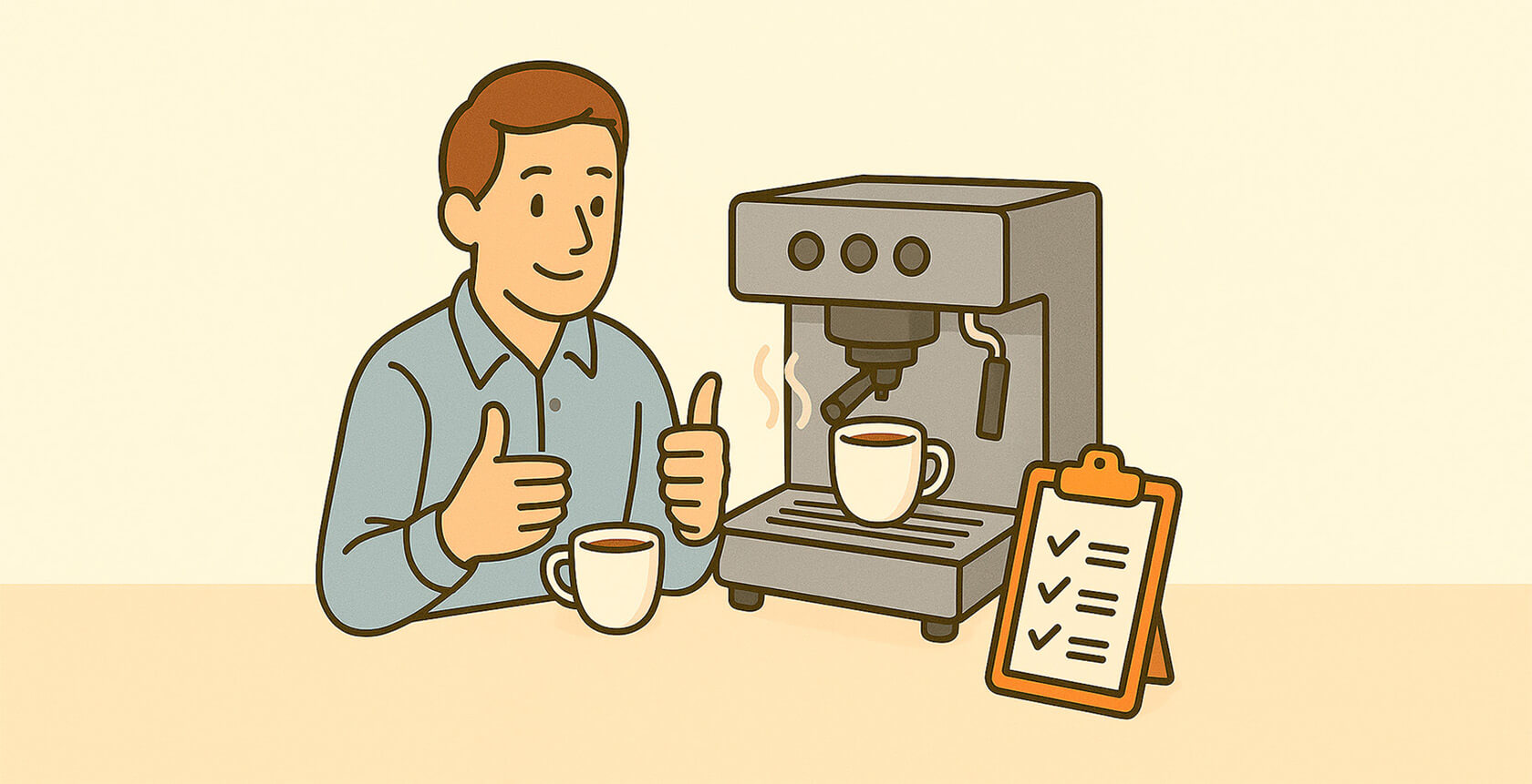 Правильно. Мы тоже так не любим. Именно поэтому предлагаем протестировать кофемашину до аренды — прямо у вас в офисе или кофейне. Бесплатно. Без обязательств. С кофе.